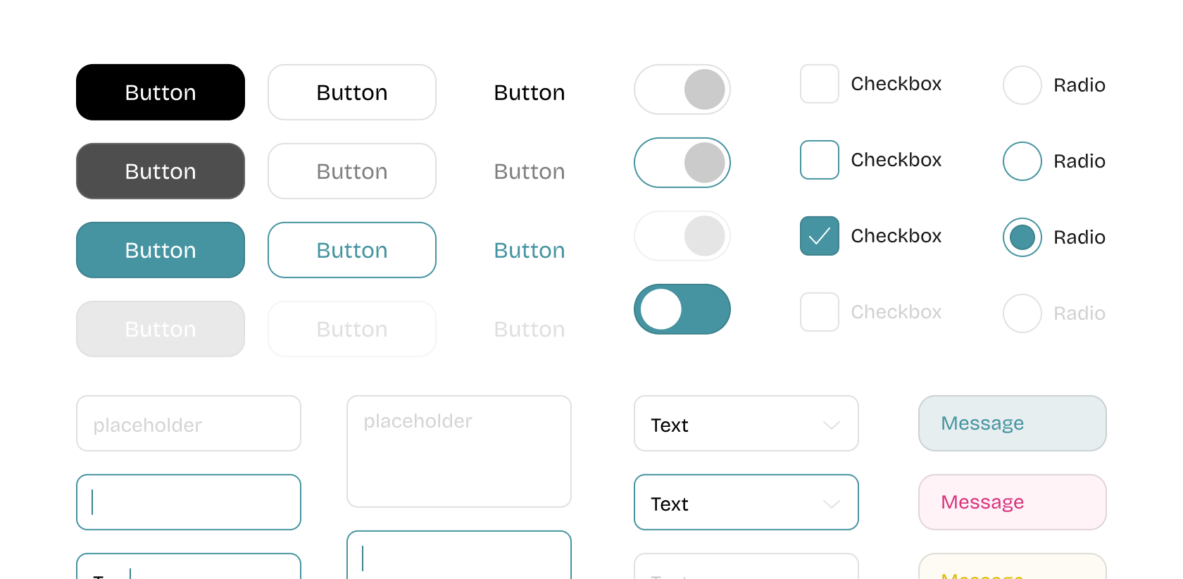 プロジェクト開始時点で定まっていたのはブランドカラーのみで、プロダクトUIを構築するためのカラースキーム・コンポーネント・ガイドラインは未整備の状態だった。各デザイナーが都度判断してUIを組み立てる属人化した設計が常態化しており、同じような要素でも画面ごとにスタイルや挙動が揃わず、レビューや実装の段階で認識のズレが繰り返し発生していた。複数プロダクトが並行で開発を進める中、判断のばらつきとエンジニアへの仕様伝達コストが日々積み重なっており、土台となるデザインシステムを早期に立ち上げる必要があった。