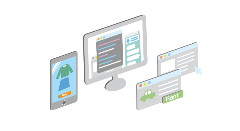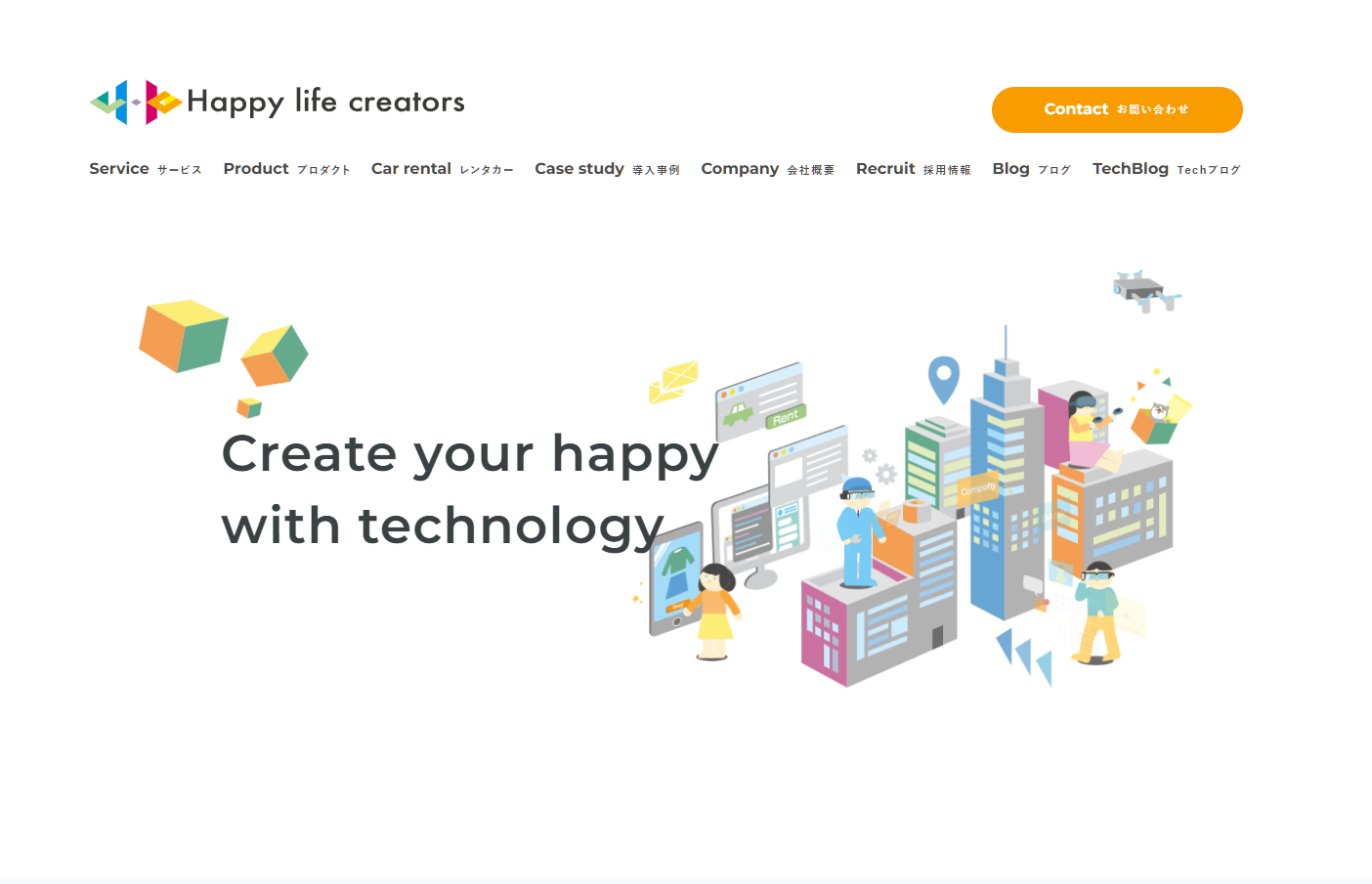 もともとあった企業の理念「テクノロジーで幸せをつくる」というキャッチコピーを軸に、生々しすぎずポップすぎない、少しテクノロジー感を感じられるトーンとしてアイソメトリックを意識してイラスト制作。ITサービスの堅いイメージと温かみのある企業姿勢のギャップをビジュアルで橋渡しした。